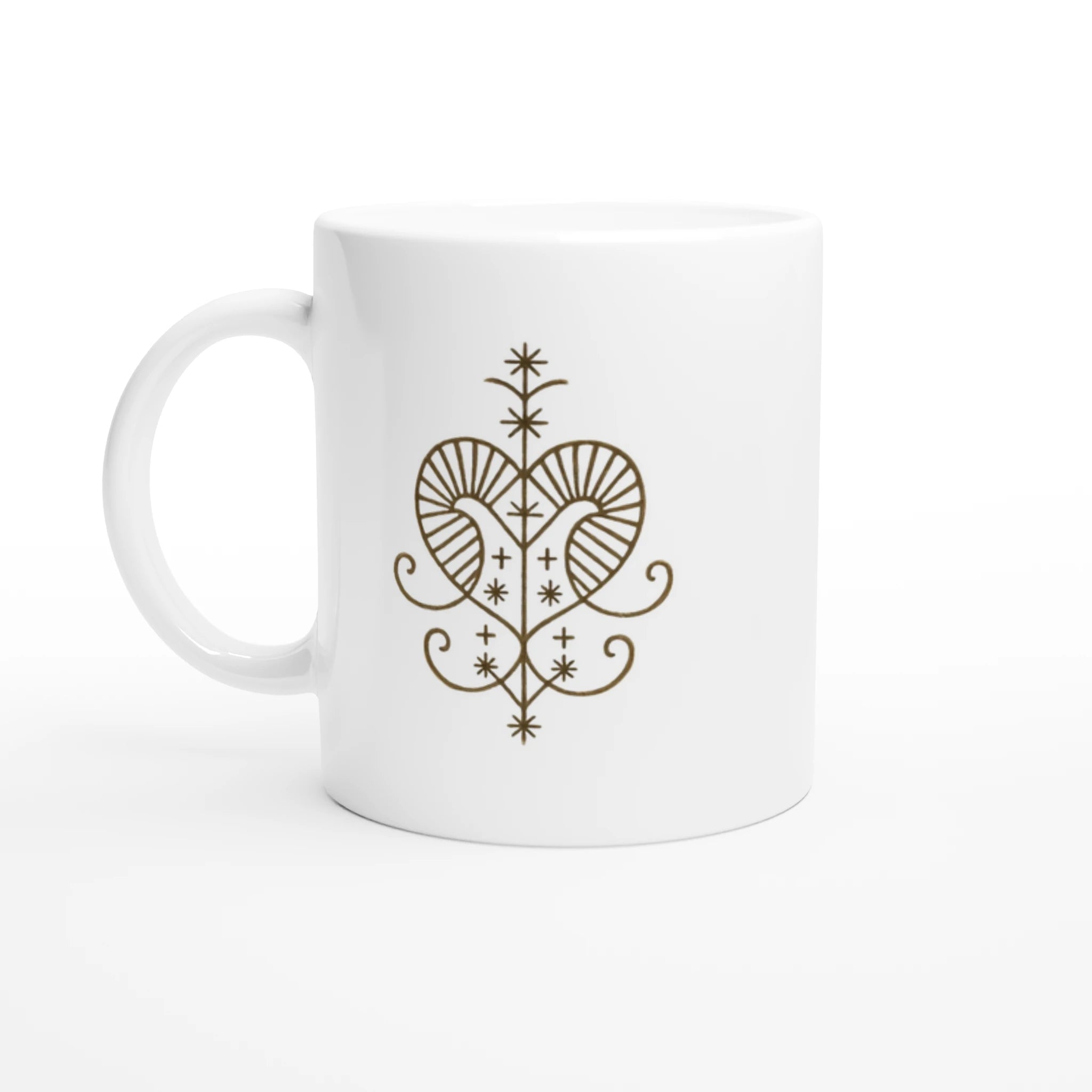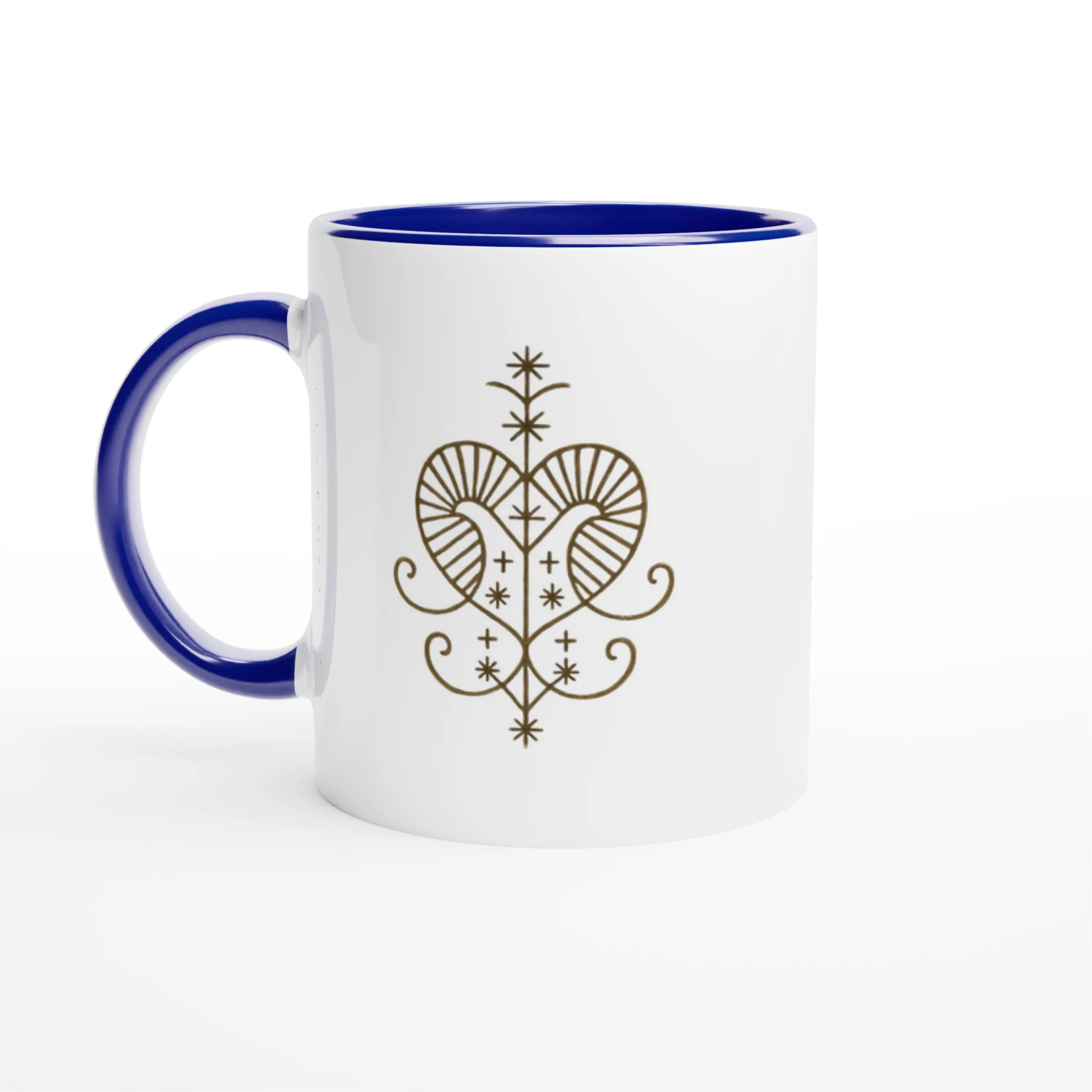 Seule tasse combinant vèvè sacré et poésie haïtienne authentique. Art fonctionnel unique.